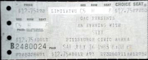 | Line Up | Dennis DeYoung, Tommy Shaw, James "JY" Young, Chuck Panozzo, John Panozzo |
