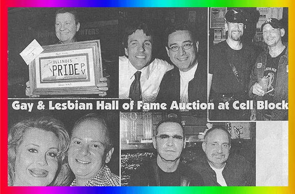 charity auction at Cell Block in Chicago. The Hall of Fame was established in 1991 to recognize the volunteer and professional achievements of gay men and lesbians, their organizations, as well as their contributions to the gay and lesbian community and to the city of Chicago. Chuck, along with STYX donated a signed guitar to the event. STYX was officially declared "friends of the community". Chuck also donated a Grand Illusion lithograph. Both items raised $4,500 for the charity. |