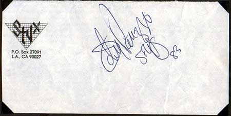 John appeared from the side of the stage again, but this time was heading straight for us. He came over and said hi and thanked us for coming to the show. He talked with us for a few minutes and signed a copy of my Styx fan club newsletter. He was very sweet and had the most infectious smile.