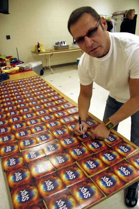 Backstage there was quite a bit of signing to do for the sponsors of WDRV's concert for contest winners who won tickets to the show. Chuck got the biggest ovation since first returning to STYX in 1999. What an incredible night! |