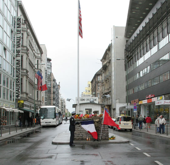 Hello Friends, Todd, Taylor and I arived here at the hotel in Berlin last night a little after 10:00 PM Berlin time after an exceptionally smooth and easy trip from Los Angeles to London, connecting three hours later to Berlin. It only took nine hours and change to get to London, which is about what it takes to get from Los Angeles to Pittsburgh if you go through Dallas on most days. JY and Suzie had been in London for several days, taking it easy, and getting thier jet lag over with in the comfort of a nice hotel there near Hyde Park. Lawrence and his family came from Paris where they had been to visit the Louvre. Ricky came from Spain. It's probably the most spread out we've ever been as a group, so it was cool to see everyone in the same place again as everyone met and hung out in the hotel lounge, catching up. As we drove in we passed by all the well known historical Berlin sites, getting an impromptu giuded tour by our cab driver. It made the trip a lot more interesting than we'd expected and so today I headed out to retrace some of the ground we'd traveled over. Unfortunately it started raining on my head so after getting to what used to be "Checkpoint Charlie," the allied crossover point between West and East Berlin, I turned back to towards our hotel, which is about 50 paces inside what was once East Berlin. There are two rows of cobblestones representing where the wall once stood to give you a reference point. It's ironic to see the guards, now working for the beaureau of tourism, posing for photos. What a difference a couple of decades makes, huh? I was here years ago sitting in a hotel restaurant doing an interview in a window seat which allowed me to look over into East Berlin. It seemed so colorless and drab, lonely and sad. A few years later I was there with Jack Blades and the two cities were in the process of blending and accepting each other. That was a tough transition for everyone here. Now it feels very upbeat, hopeful and on the move, its past growing smaller and smaller in the rearview mirror. In a couple of hours we'll head to the gig for a soundcheck and we'll be officially under way here. So far so good on getting on line. I'll post whenever possible. Until then...