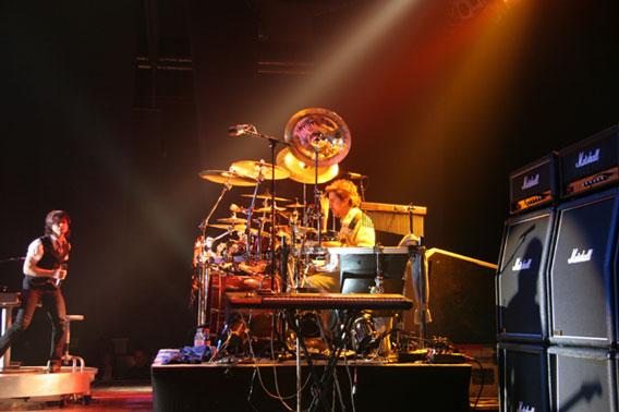 Jason took this shot from stage left. Notice JY is represented by his shadow on the Marshall stack during "Come Sail Away" in Berlin. Good eye, Jaypo |