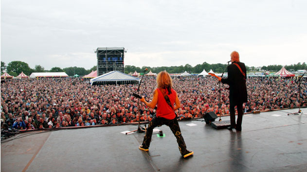 It was a long time coming. We had been hearing about this festival for years, but because we were in some state of flux or another in our up and down circuitous career map it had simply never been something we could make happen until now. But once more, STYX fans proved to know no borders and made us feel right at home again. There had been some light showers and a chill in the air as we arrived the concert location, but the weather cleared and held thoughout our set. As we hit the opening notes of "Blue Collar Man" people emerged from all around the enourmous perimeter tents and streamed into the already crowded field in front of us until it was a mass of humanity unlike any we've performed for in this part of the world. It was awesome and we could have played all night, but too soon we were saying farewell. This shot tells more than any more words from me could exclaim. TS |