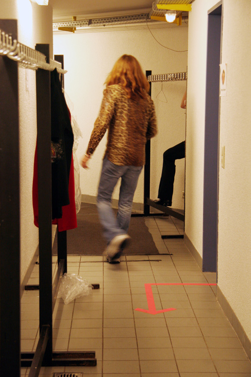 Ricky, a few minutes before showtime in Stuttgart (he'd be following the arrows if it was time to go to the stage)... |