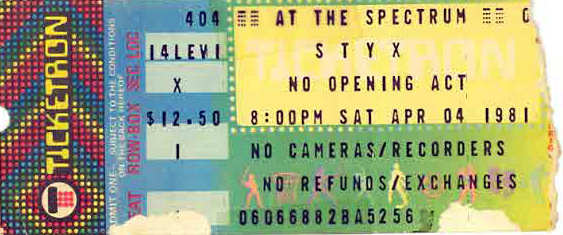| Line Up | Dennis DeYoung, Tommy Shaw, James "JY" Young, Chuck Panozzo, John Panozzo |